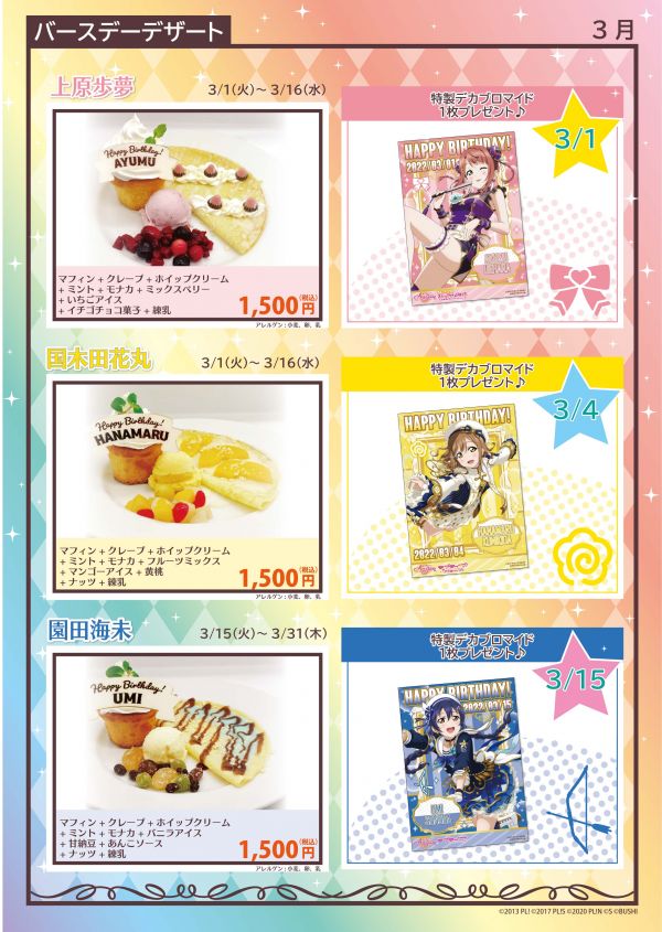 「THEキャラCAFÉ×ラブライブ!スクールアイドルフェスティバル ALL STARS」のコラボカフェにて、3月前半に登場予定のメニューをご紹介!